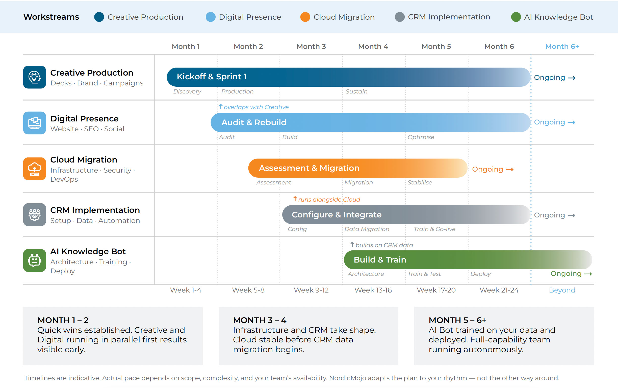 Pay for results, not headcount. Our engagement model focuses on delivering value, not billing hours.